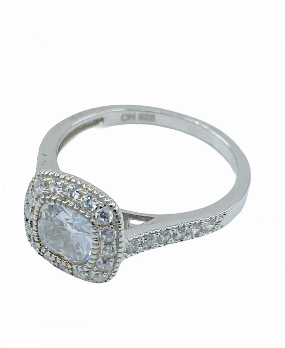 Silver Square C/Z cluster ring